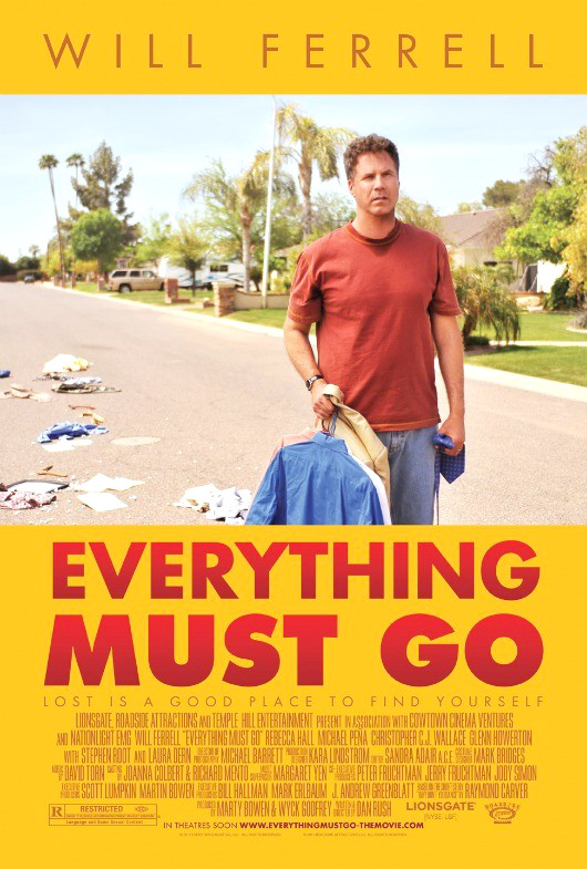 影片讲述一位名叫尼克的推销员在同一天被解雇、回到家发现妻子换了锁,并把他轰出家门,失去了一切的他只有屋外草坪里一堆属于他的破烂物件,代表着他一事无成的前半生。其后他从“失去”中找到了新的机会,一个小小的机会来寻找新的自我,尼克把所有的东西都陆续卖掉,并且走向了新生活,本文的英文名“Every Thing Must Go”更具双重启示意义,这不仅仅是一场大甩卖,更是一个小人物摆脱失败过往,大步向前迎接新生活的心路历程。